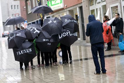 „Pirates of the city“. Das Kunst – und Tanzprojekt des Museums Ostwall im Dortmunder U und des Balletts Dortmund hatte am 3. November seine Premiere! Über viele Wochen haben Jugendliche das Fluxus-Motto „Kunst für Alle“ kennen gelernt und gemeinsam mit der Designerin Sabine Gorski und dem Choreographen Justo Moret eine öffentliche Kunst- und Tanzperformance durch die  Dortmunder Innenstadt entwickelt. Die Performance startete im Dortmunder U, führte über den Ostenhellweg und endete im Opernhaus und wurde dabei von einer Live-Kamera aufgenommen.